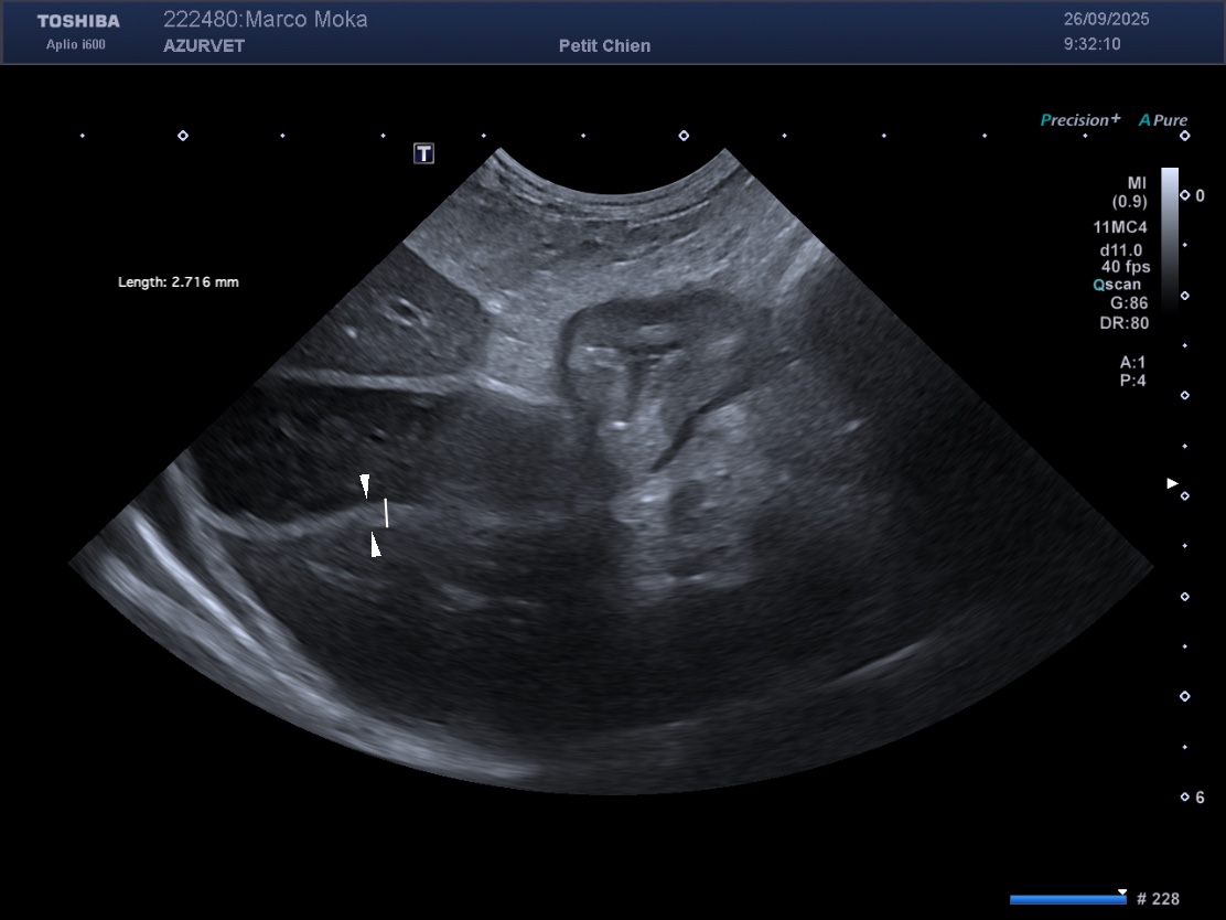 Figure 2 : épaississement pariétal discret de la paroi de la VB chez le même animal que la figure 1.